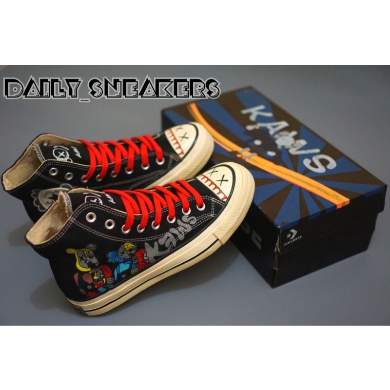New Sepatu Converse 70s x kaws Companion High Glossy Black White Yellow white Soft Army Grey