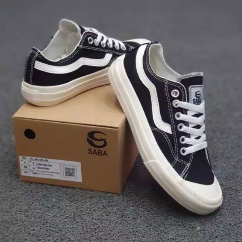 SEPATU SABA VELOZ - PUBLIC - BLACK WHITE LOW - ORIGINAL TOP SELLER 100%