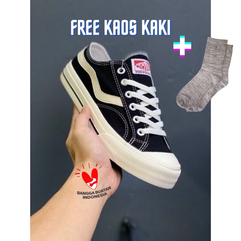Sepatu Ventela Public Low Black Natural 100% Original ( Free Kaos Kaki *)